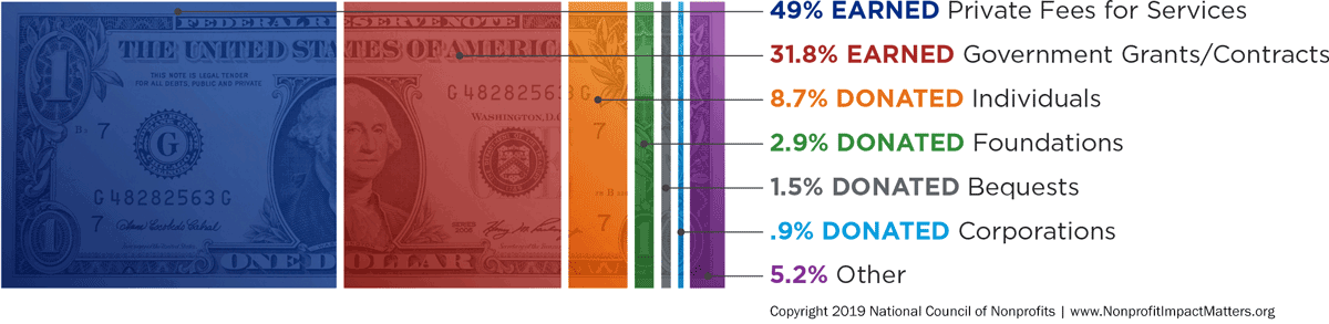 Reality: Foundation grants represent only a small part of the total amount of dollars contributed each year to the charitable nonprofit community. Private philanthropy, which includes both donations and bequests from individuals and grants from private and corporate foundations, represents only 14% of the total annual revenue to the charitable nonprofit community, and of that, the majority is from contributions from individuals.